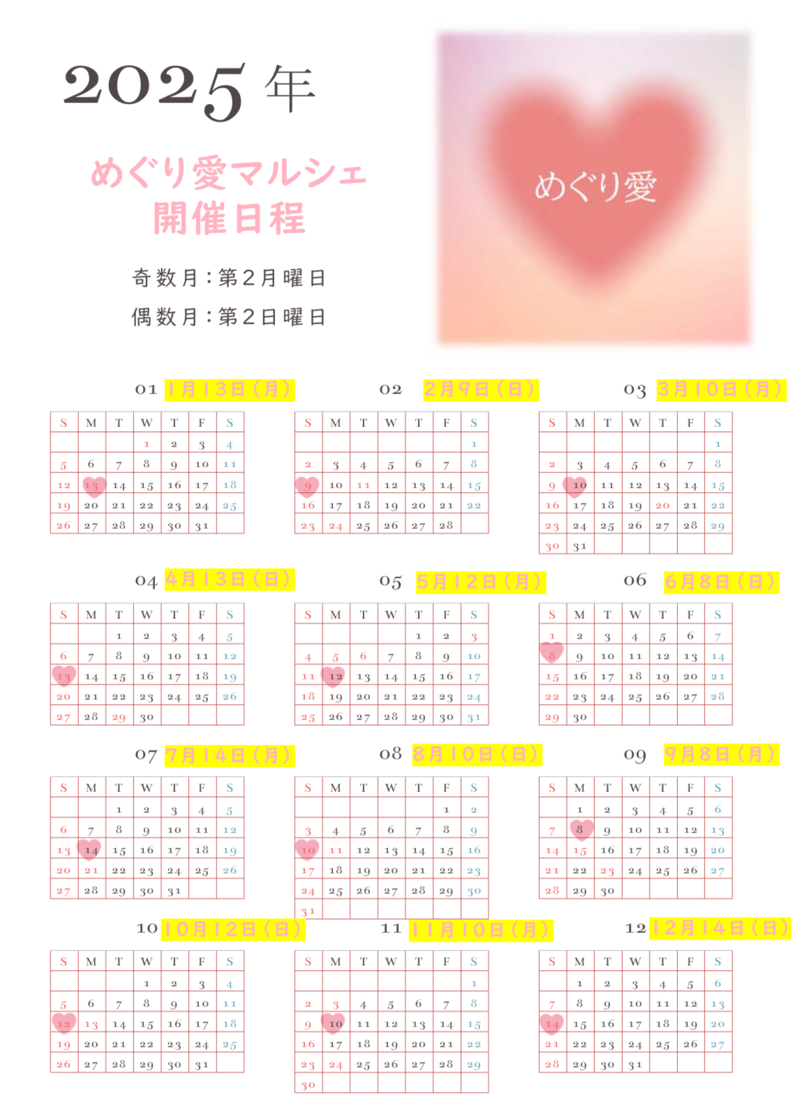 【めぐり愛マルシェ】2025年カレンダー